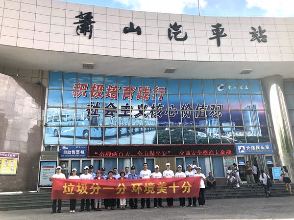 8月15日上午,蕭山長運公司垃圾分類宣傳員聯合行政一支部、二支部、群團組織以及交通派出所黨支部的志愿者們在蕭山汽車總站開展“垃圾分一分 環境美十分”主題宣傳活動。