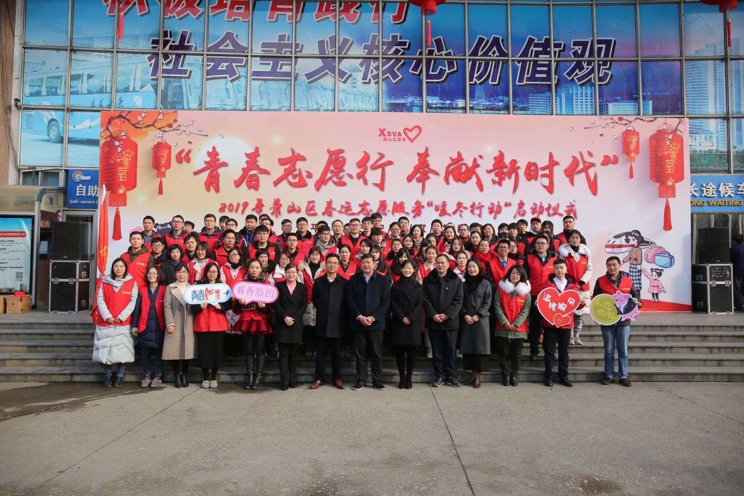 為弘揚“奉獻、友愛、互助、進步”的志愿精神,助力春運工作平安、有序開展,進一步發揮青年志愿者在春運工作中的重要作用,1月21日上午,團區委、區交通運輸局團工委、區交投集團團委聯合在蕭山汽車站舉行“青春志愿行·奉獻新時代”2019年蕭山區春運志愿者服務“暖冬行動”啟動儀式。團區委書記楊芳,集團黨委書記、董事長祝關翔,團區委副書記孔美華,集團紀委書記郭維濤出席啟動儀式,蕭山交投集團志愿服務總隊、區交通運輸局志愿服務總隊、區青年書法家協會共80多名志愿者參加儀式。